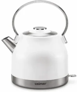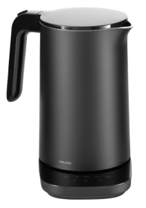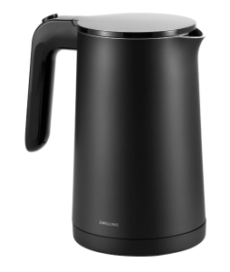 Stalowy czajnik firmy Zwilling dostaniemy w dwóch wersjach kolorystycznych (czarny i srebrny) i dwóch różnych pojemnościach (1 lub 1,5 litra). W obu przypadkach moc to 1850 W. Jest to prosty czajnik bez regulacji temperatury, a to co dodatkowo go wyróżnia to filtr stalowy o drobnych oczkach.