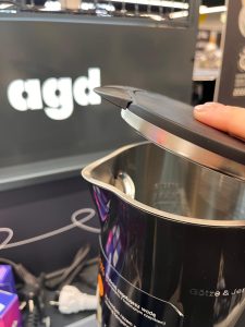 Tym razem czajnik dla osób, które potrzebują mniejszą pojemność – idealny dla singli. ! litr i 2200 W mocy. Podobnie jak u poprzednika we wnętrzu wyżłobione mamy oznaczenia dla minimalnej i maksymalnej ilości wody. Możemy też ręcznie zmieniać temperaturę, do której woda ma się gotować, więc ponownie mamy czujnik, który sprawia, że wnętrze czajnika nie jest jednolite.
